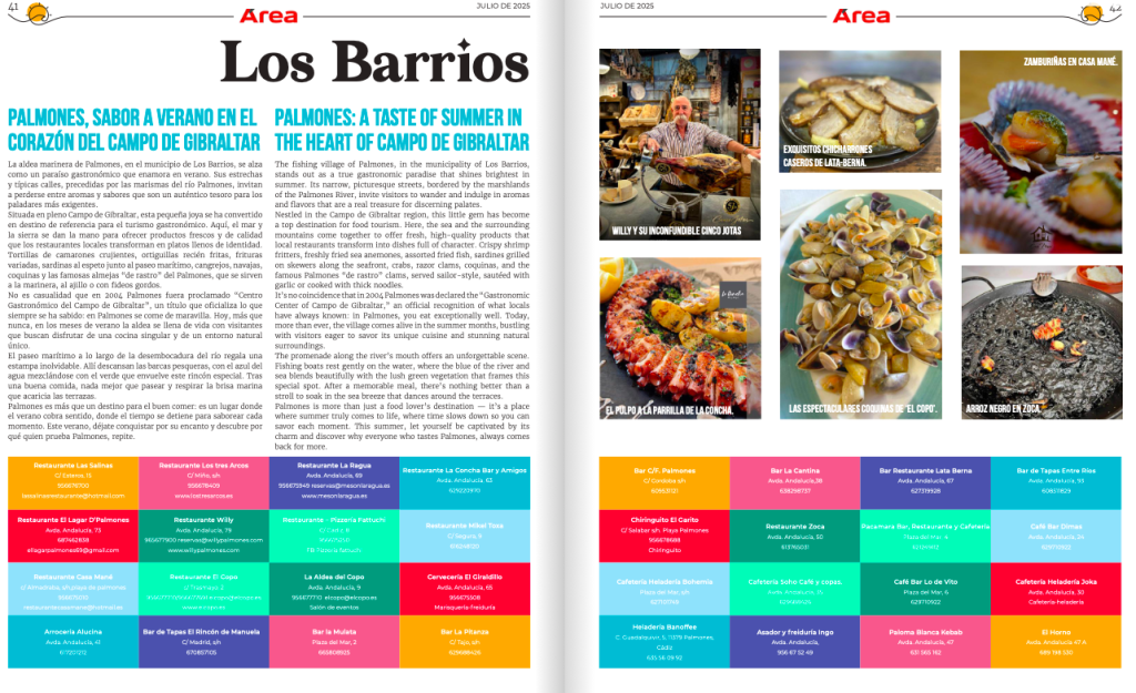 El periódico turístico The Best of Area, que incluye una edición digital, destaca la oferta gastronómica de nuestro municipio, incluyendo además un directorio de los establecimientos hosteleros de Los Barrios.